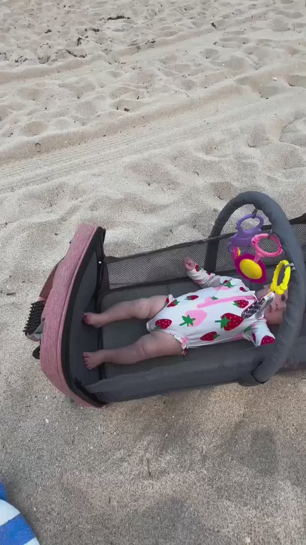 Der BubbyGo™ lässt sich zu einer echten Wickelstation im Wiegenstil ausklappen, ausgestattet mit atmungsaktiven Netzseiten für zusätzliche Sicherheit. Öffnen Sie einfach den hinteren Teil, ziehen Sie die Struktur auseinander und legen Sie die gepolsterte Matratze hinein – schon haben Sie einen sauberen, sicheren und praktischen Platz, ideal zum Wickeln oder Ausruhen Ihres Babys.